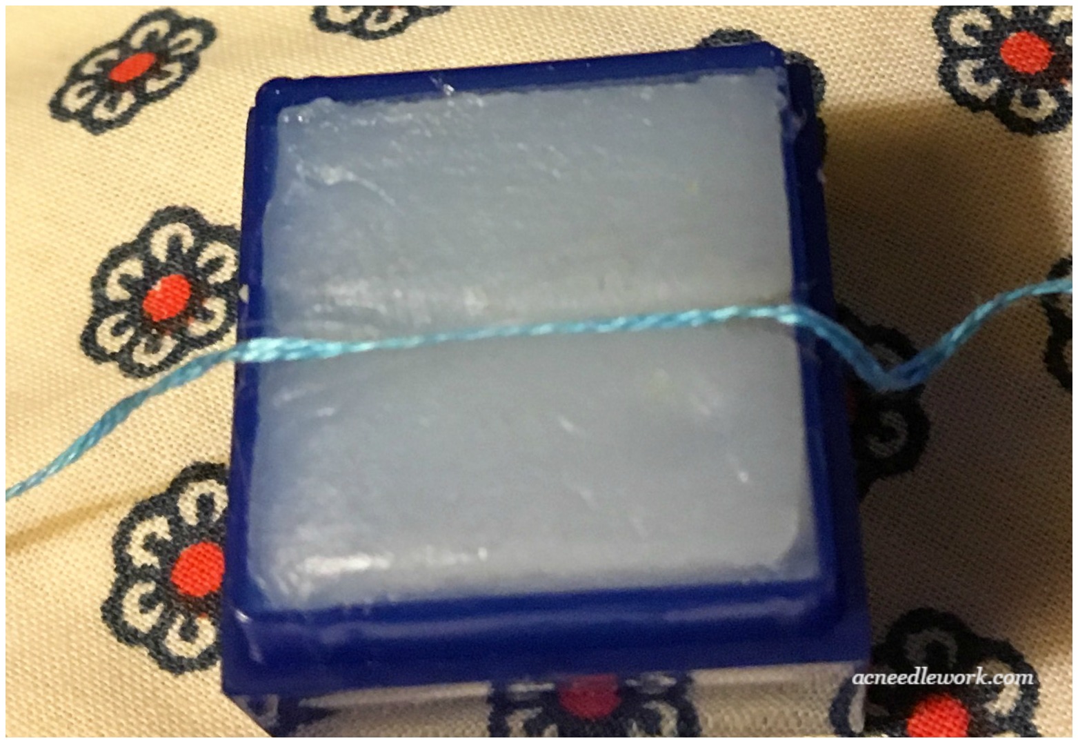 Does your embroidery floss knot up when you are stitching? Do you forget to let it twirl from time to time to let it unwind? Do those two strands of floss split every time you try to thread a needle? Well, this product that I recently tried has helped with this problem.