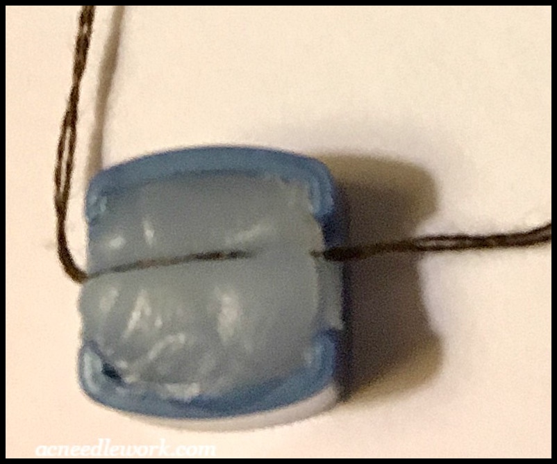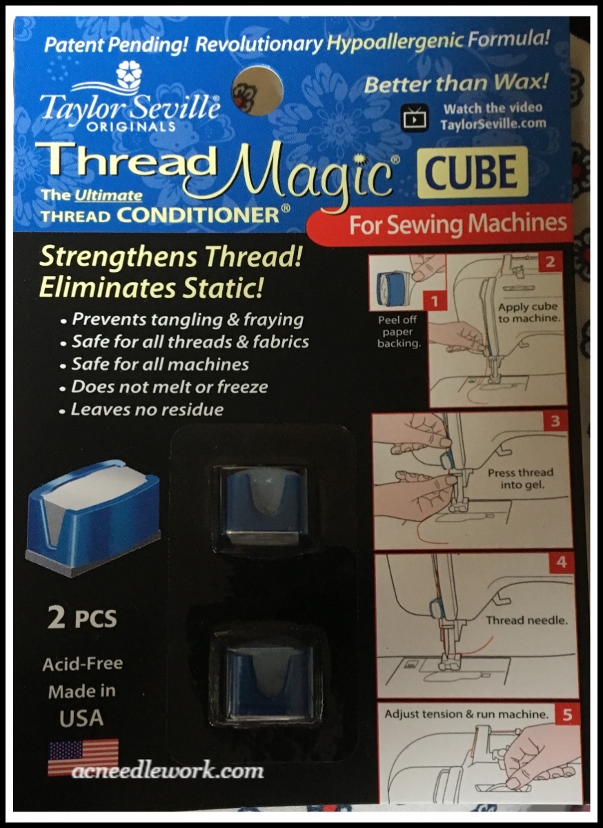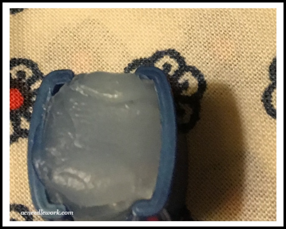 I finally settled on a product called Thread Magic®. On the package you will see this version is for sewing machines but it also works for floss for hand needlework. It does come in a larger size but I found these small cubes easy to work with and they fit in my stitching bag. Price ranges are reasonable (between $7.00 to $15.00, depending on the size of the package). These photos will give you an idea of what it looks like.