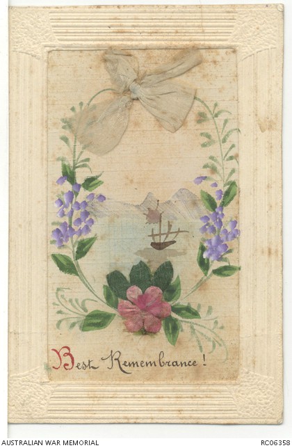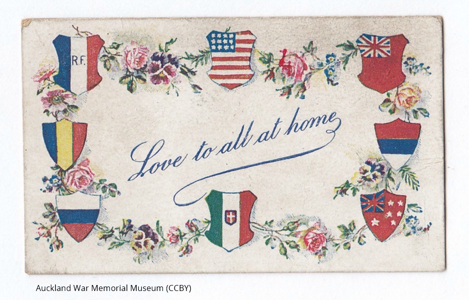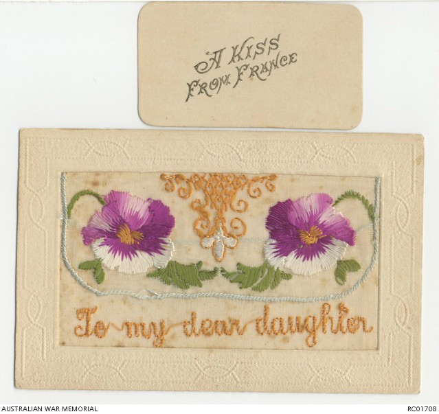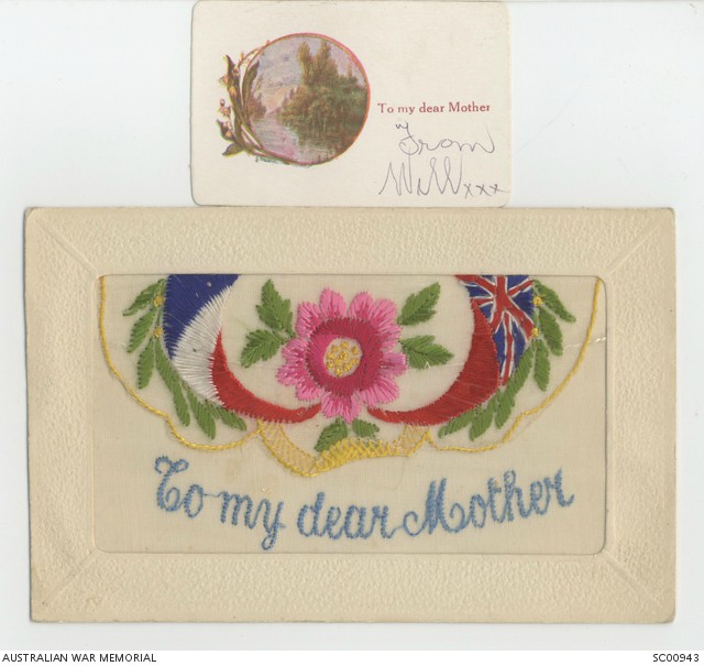 Auckland War Memorial Museum Auckland, New Zealand This collection also includes the notes written on the back of the postcards. These messages are quited moving. http://www.aucklandmuseum.com/collections-research/collections/search?k=WW1+silk+postcards