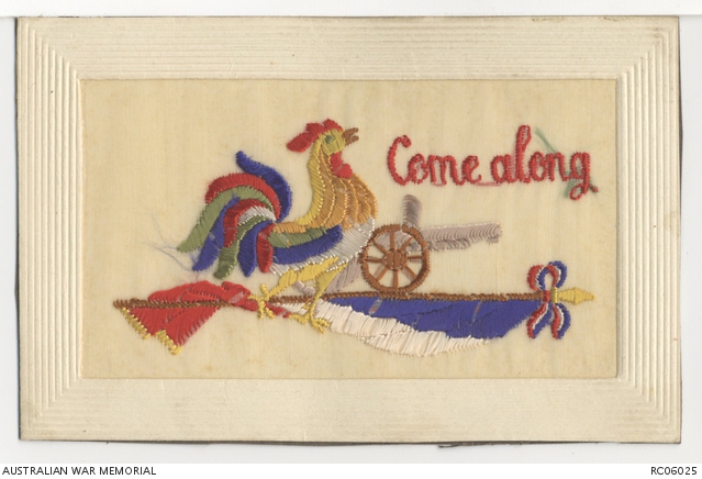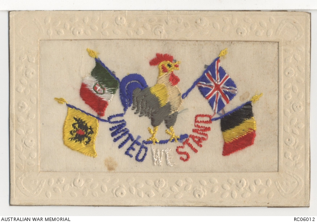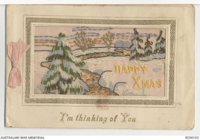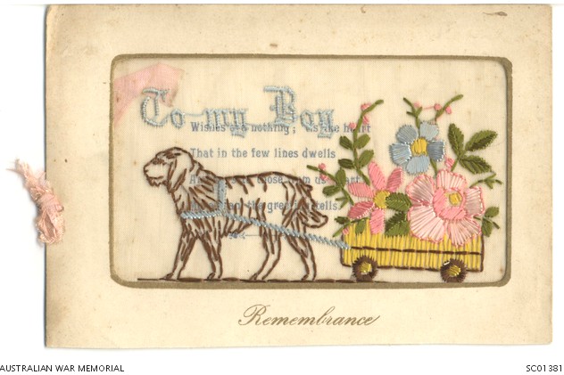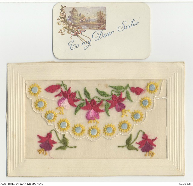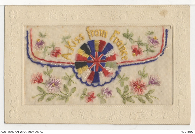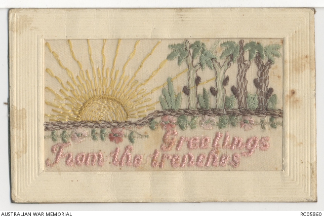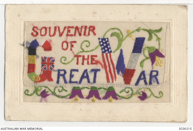 Australian War Memorial in Campbell ACT, Australia. The Memorial Collection contains over 900 silk post cards. https://www.awm.gov.au/collection/C969941
