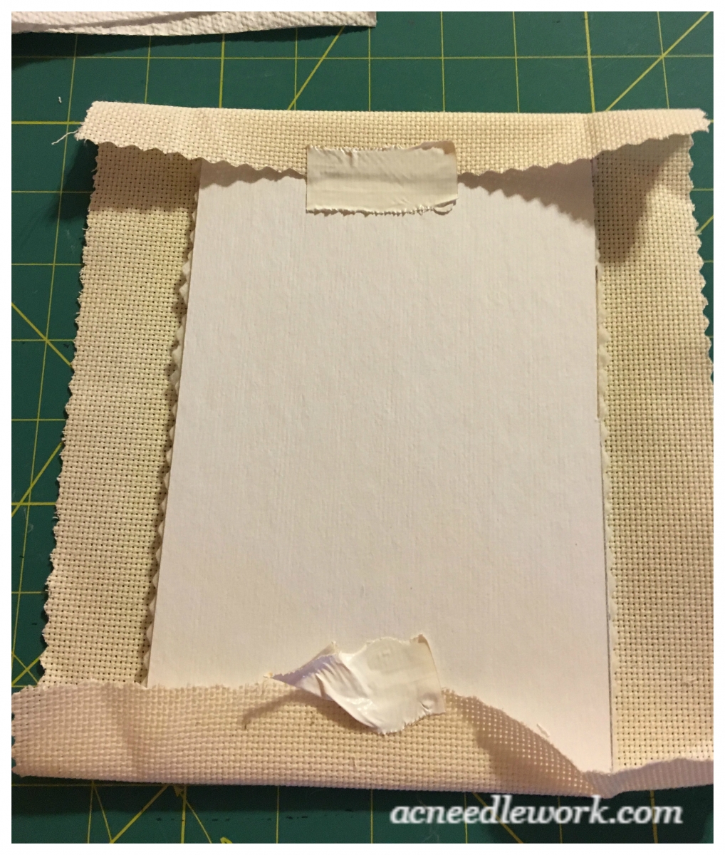 | Be sure your stitched piece is centered on the mounting board | Mounting finished | Other boards covered with fabric |