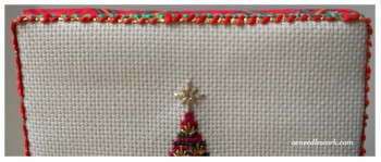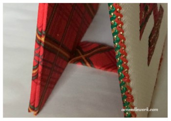 Flat fold is the process of mounting your stitching on a board which is then “sandwiched” with three other covered boards. It creates an easel type display for your stitching and allows you to fold it up for storage. It’s a great way to finish pieces that you only want to display during a particular time of year, like Christmas.