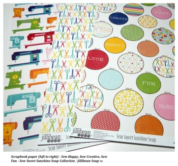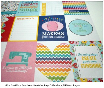 Jillibean Soup ™ has released a new scrapbook collection with a sewing theme. They call it the Sew Sweet Sunshine Soup Collection. Here’s a close up of items I will be using in my planner.