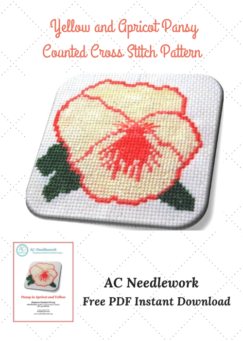 Pansy In Apricot and Yellow Cross Stitch Design